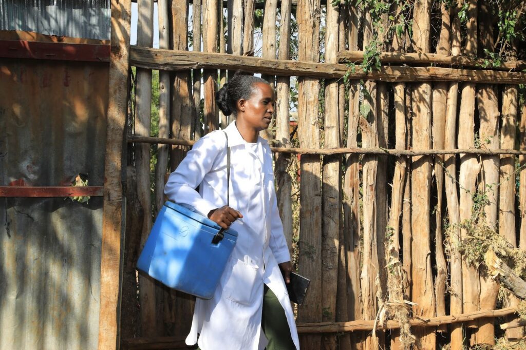 The reality of the “last mile” in Ethiopia is best captured in the footsteps of a community health worker navigating the rugged highlands. During the peak of the rainy season, when the terrain turns to slick clay, where even motorbikes fail, the dedicated community health workers carry vaccine carriers on their backs, trekking for miles through deep mud to ensure a single child is protected.